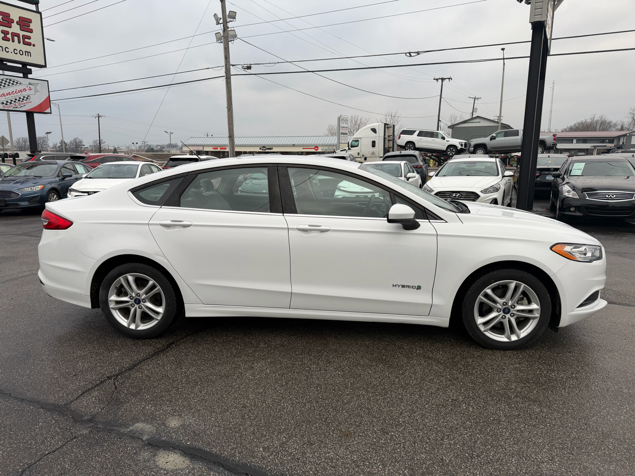 Hop into this sleek and stylish White 2018 Ford Fusion Hybrid and get ready to zip around town in style! With its fuel-efficient 2.0L iVCT Atkinson Cycle I-4 Hybrid engine, this car is not only environmentally friendly but also a blast to drive. The front-wheel drive and electric power-assist speed-sensing steering make navigating a breeze, whether you're cruising down the highway or zipping through city streets.