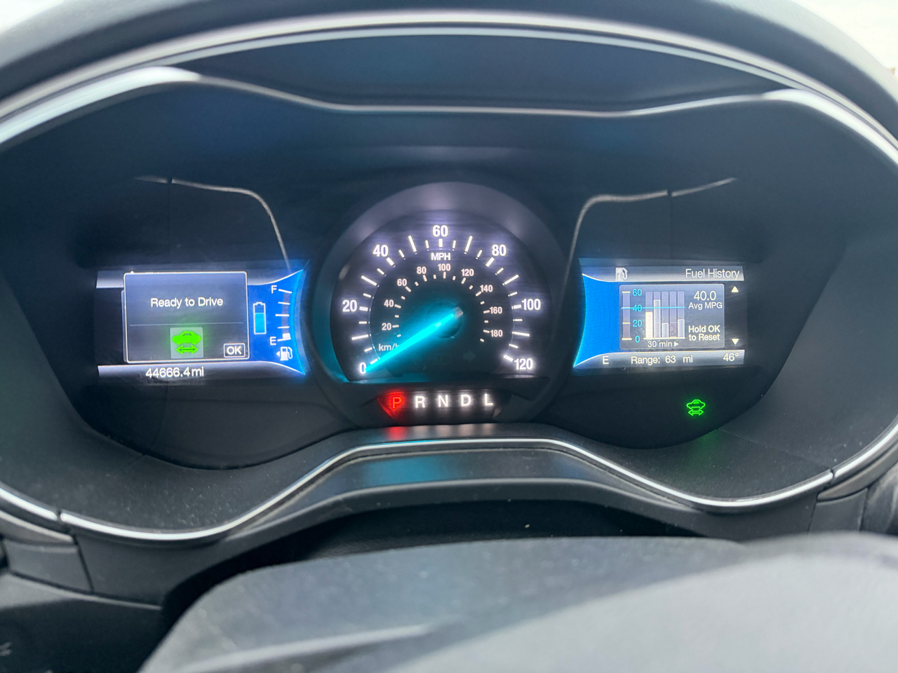 The Fusion Hybrid is not just a pretty face - it's packed with safety features like dual stage driver and passenger airbags, rear child safety locks, and a back-up camera for added peace of mind. Plus, the Mykey system allows you to set customized driving parameters for different drivers.
