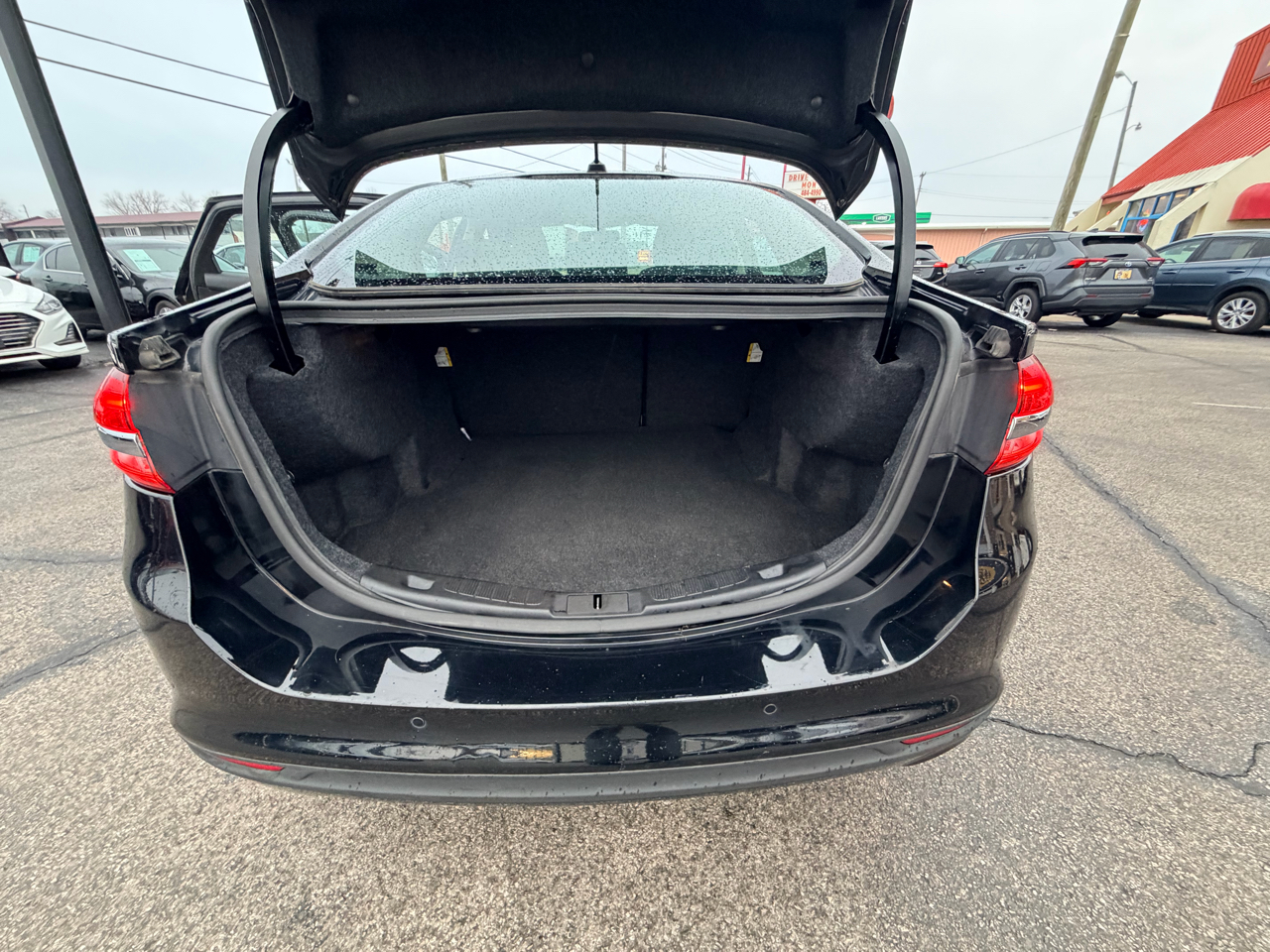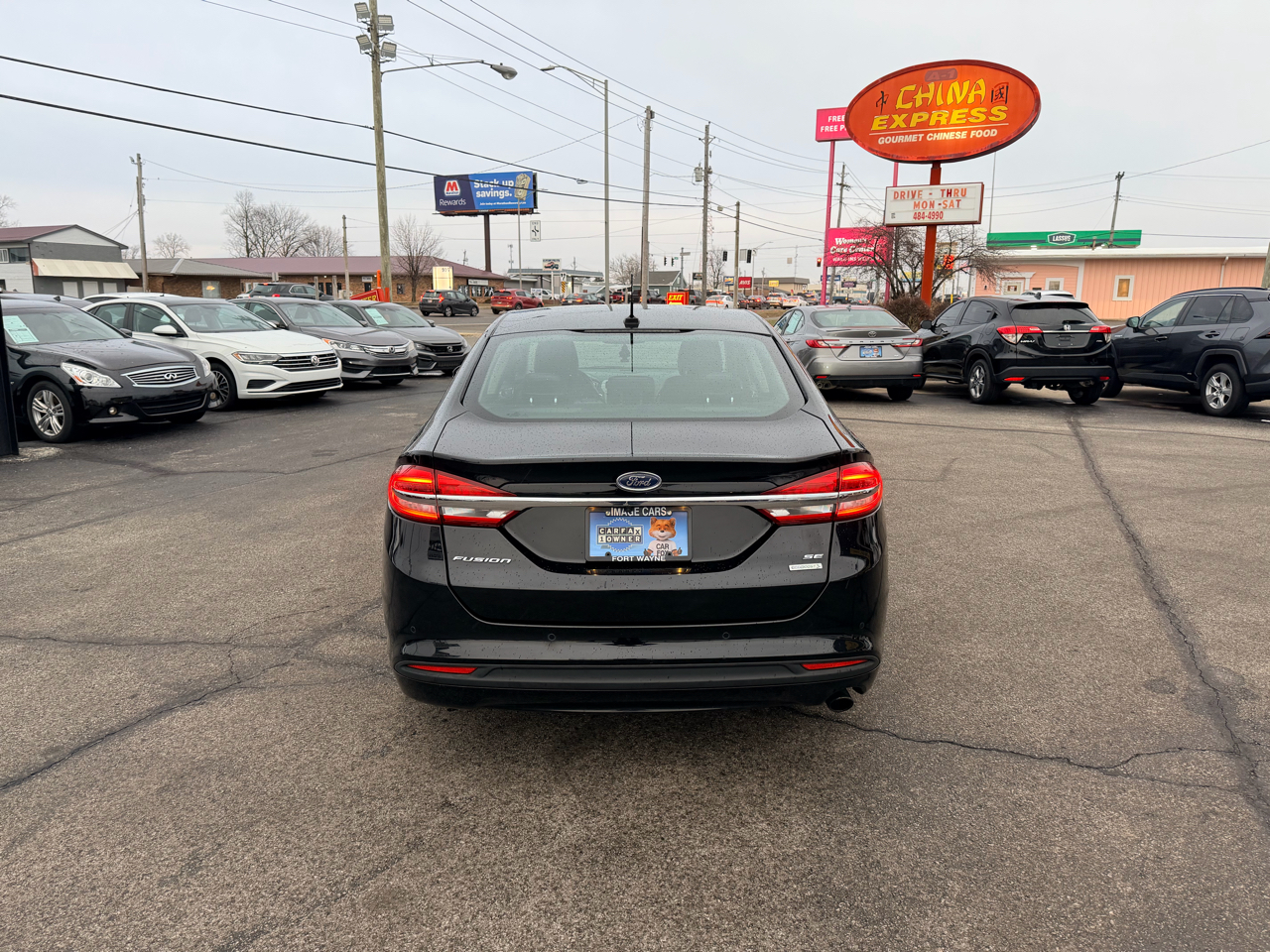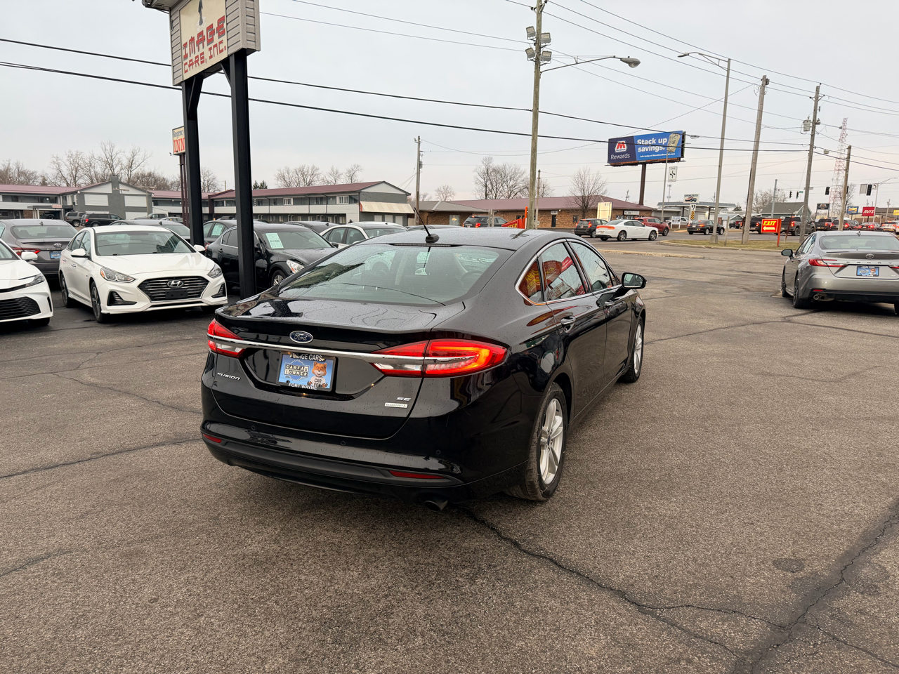 Hop into this sleek 2018 Ford Fusion and hit the road with confidence! This car boasts a smooth ride with its front-wheel drive system and gas-pressurized shock absorbers. With its striking black exterior and chrome accents, you'll turn heads wherever you go. The spacious interior features comfortable cloth seats and a convenient split-folding rear bench for extra cargo space. Stay connected with the integrated roof antenna and streaming audio system as you cruise down the highway. Safety is a top priority with dual-stage airbags, a backup camera, and tire pressure monitoring. Plus, rest assured with the included Carfax report. Whether you're running errands around town or embarking on a road trip adventure, this Ford Fusion is ready for all your driving needs. Don't miss out on the opportunity to own this reliable and stylish vehicle - schedule a test drive today!